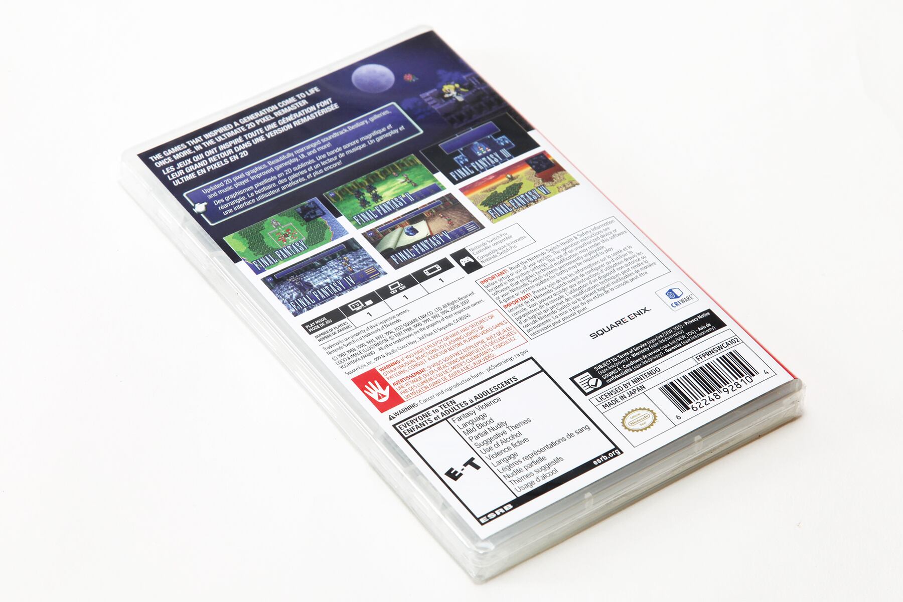 NINTENDO SWITCH「ファイナルファンタジー I-VI ピクセルリマスター アニバーサリーエディション(Final Fantasy I-VI Pixel Remaster Anniversary Edition)」北米版のパッケージ版です。