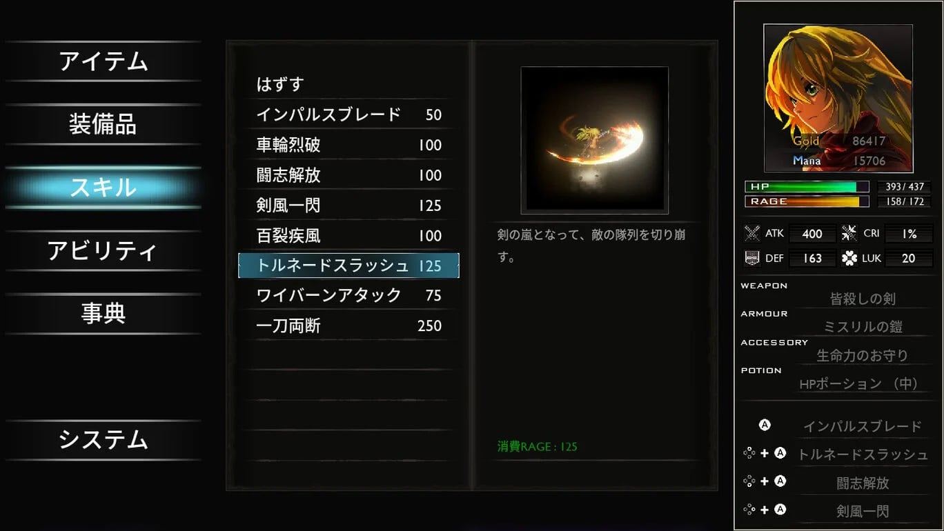装備品を生成、強化したり、スキルやアビリティを習得してヴィヴィアンを成長させ、多彩なコンボ、チャージ、スキル攻撃を駆使して敵を撃破しよう。